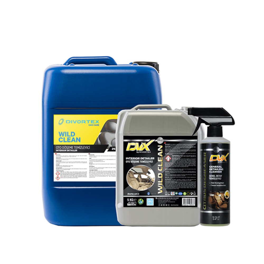 Deri koltuk ve döşemeler için divortex 3’ü bir arada deri koltuk kremi, iç klima temizliği için Divortex klima temizlik spreyi ve fresh kokusu, torpidoların parlak ve steril görünmesi için divortex car shine prime torpito bakım sütü bu seçenekler arasındadır. Bunun dışında bagaj, tavan ve diğer iç yüzeyler için etkin divortex wild clean genel temizleyici ise detaylı temizliğin ana kahramanlarıdır.